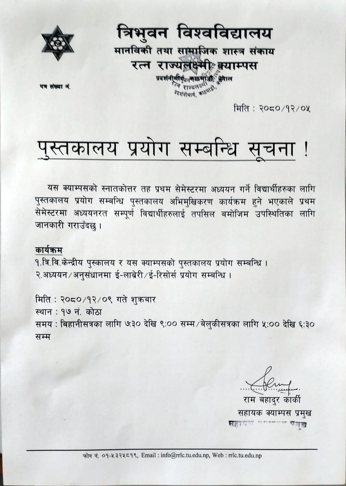 पुस्तकालय प्रयोग सम्बन्धि सूचना !