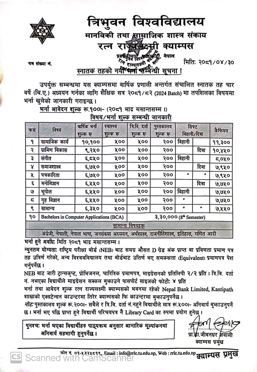 स्नातक तहको नयाँ भर्ना सम्बन्धी सूचना !