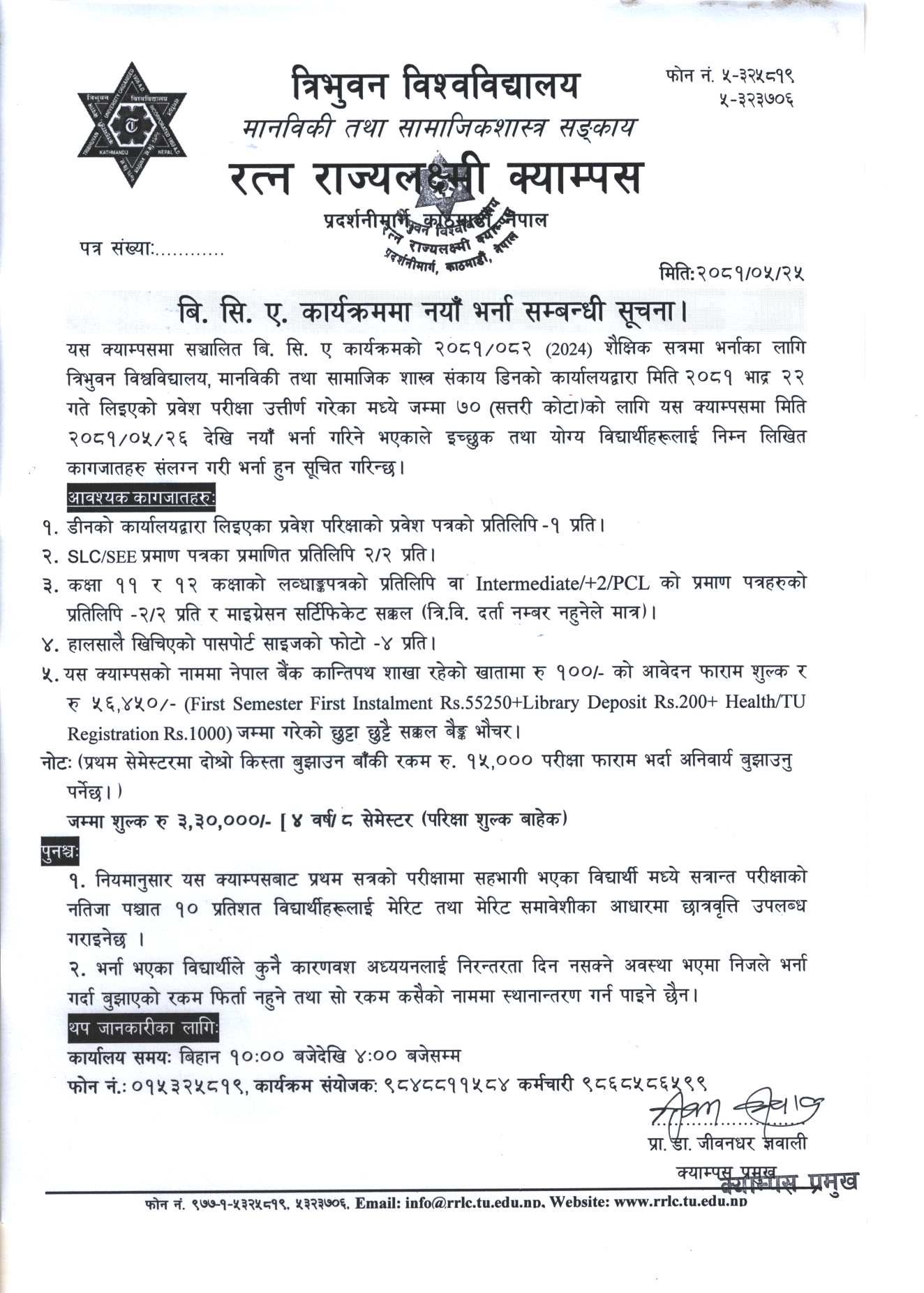 स्नातक तह तेस्रो वर्षको भर्ना सम्बन्धी सूचना
