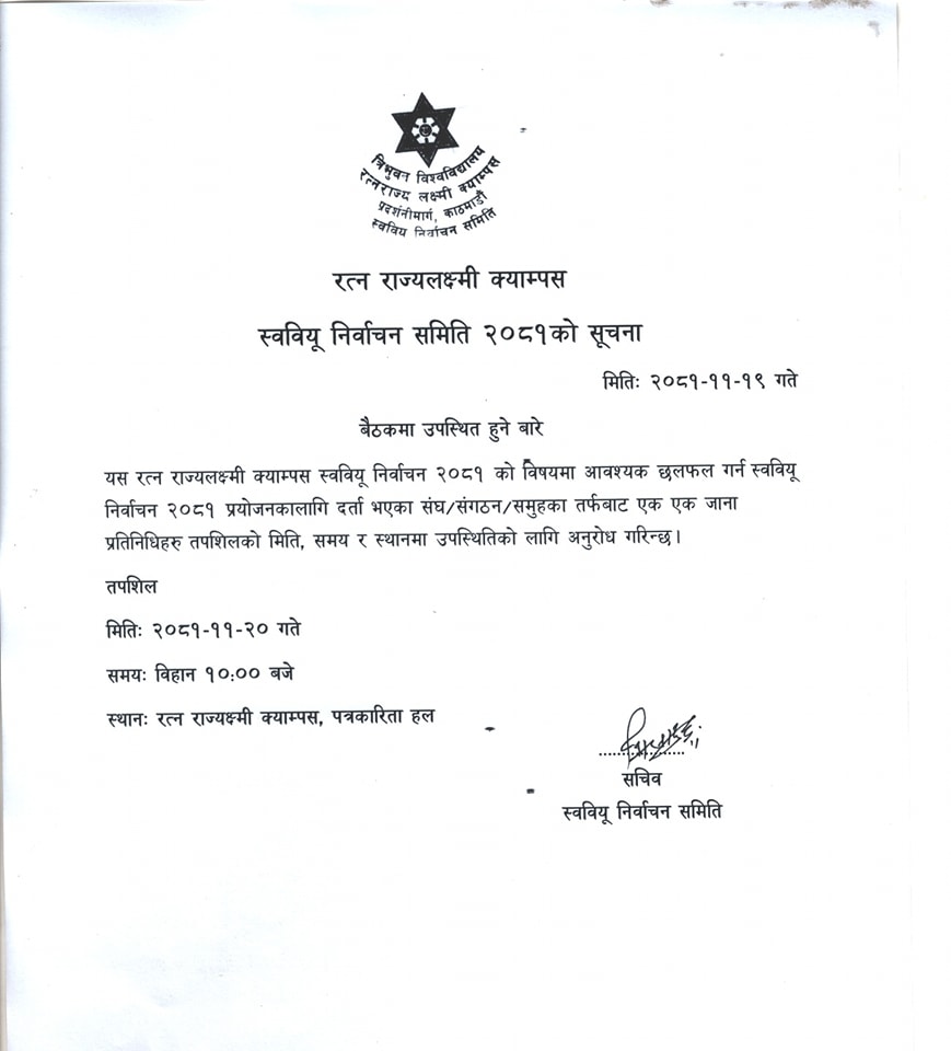 बैठकमा उपस्थित हुने बारे स्ववियु निर्वाचन समितिको सूचना !